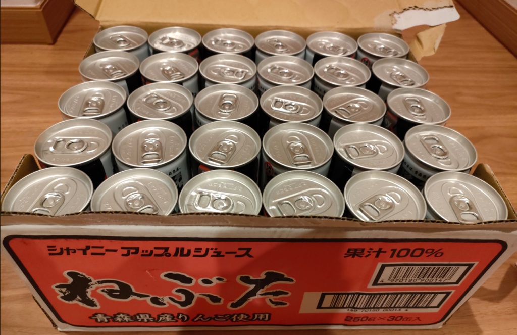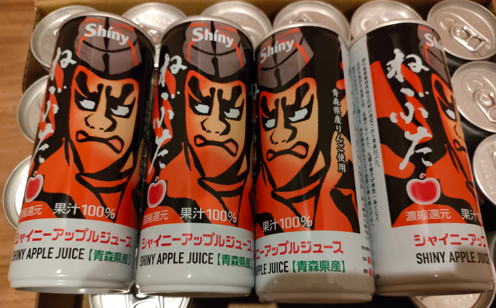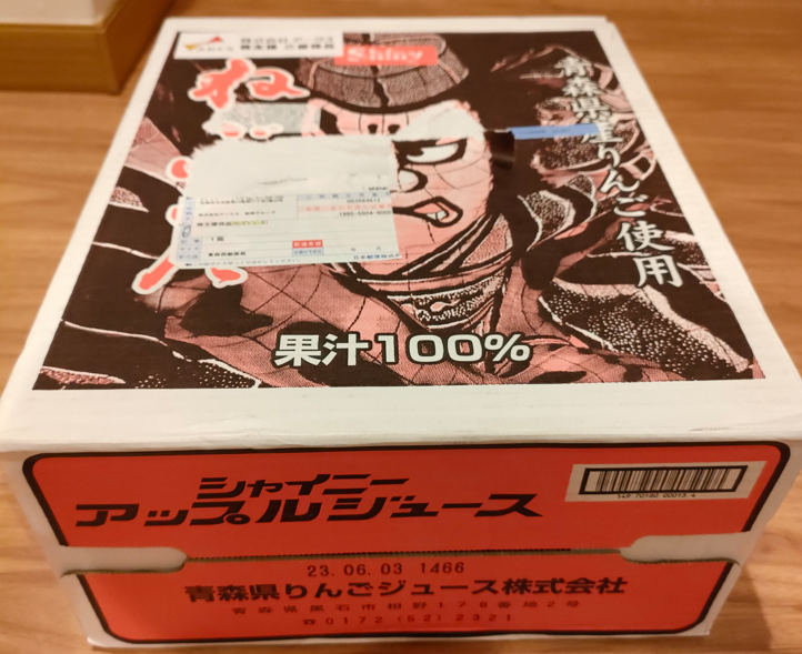 『↓』は宅急便から荷物が届いた様子です。外装の箱で中の商品がしっかりと守られていました。にしても、ねぶたとリンゴに何の関係があるのでしょう。。。