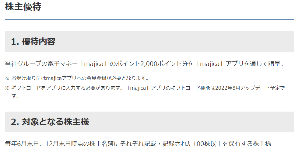 『パンパシフィックインターナショナル(PPIH)』の株主優待は、6月と12月に100株保有していればでそれぞれの月で『2000円分のmajicaクーポン券』が貰えます。優待品を得るための長期株保有条件もないのでおすすめです。