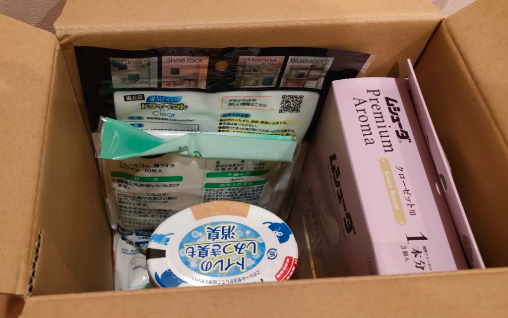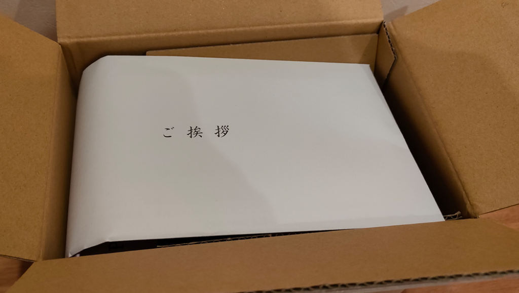 『↓』は宅急便から荷物が届いた様子です。外装の箱で中の商品がしっかりと守られていました。