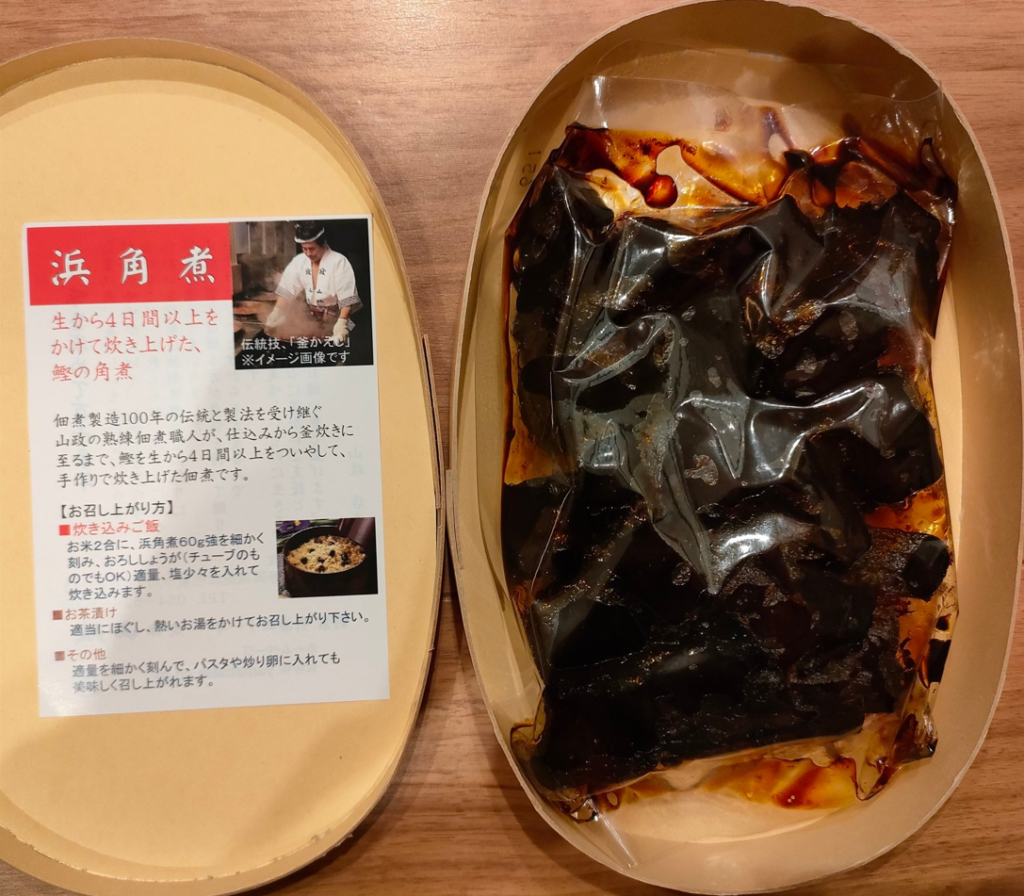 私は、1000円相当の優待カタログを貰いましたので、「浜角煮」(優待商品番号:0106)を選択しました。
