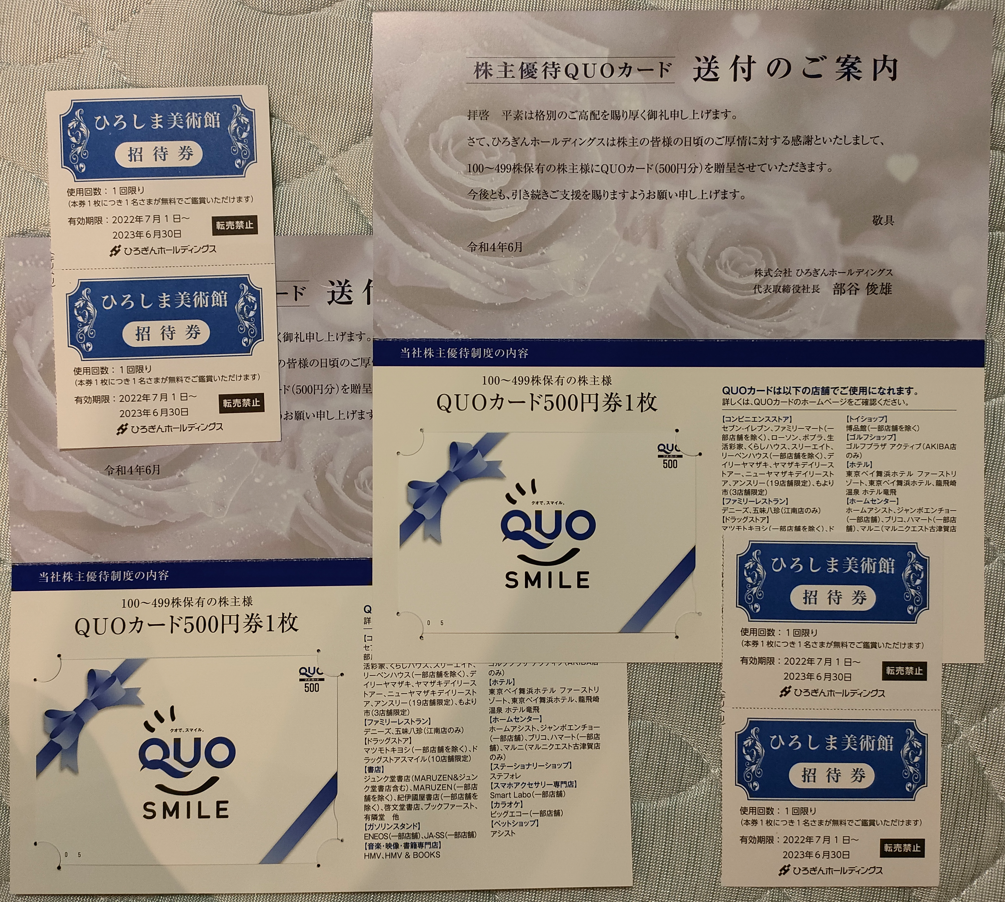 今回は『ひろぎんホールディングス』の『500円クオカード』についてお伝えしました。