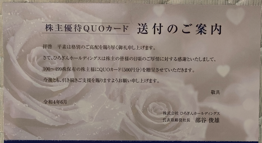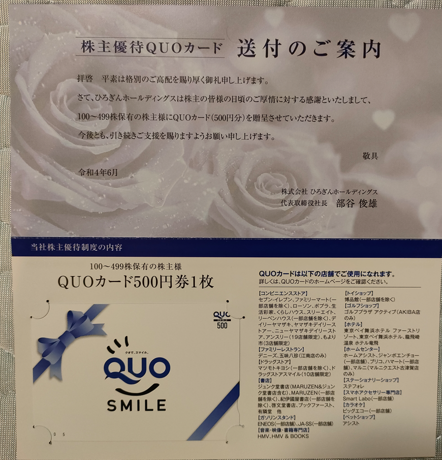 それでは、ひろぎんホールディングスの500円クオカードのご紹介です。