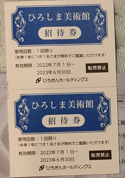 実は、ひろしま美術館の招待券も入っています。なかなか広島に行く機会はありませんが、立ち寄った時にはいってみたいですね。