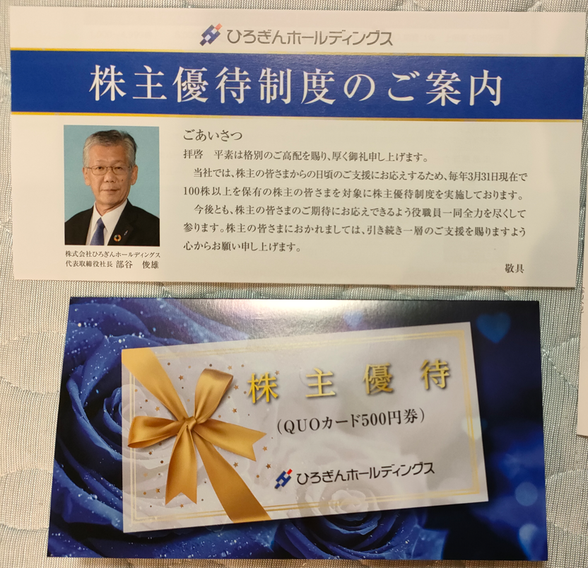 ひろぎんホールディングスの株主優待は『500円クオカード』