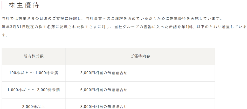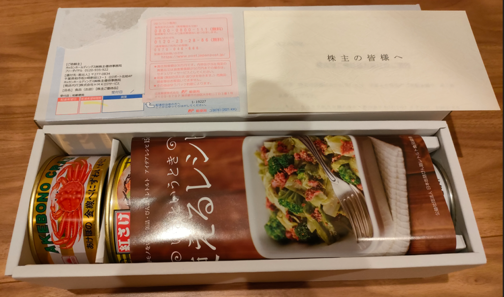 ホッカンの株主優待は『3000円相当自社製品缶詰詰合わせ』