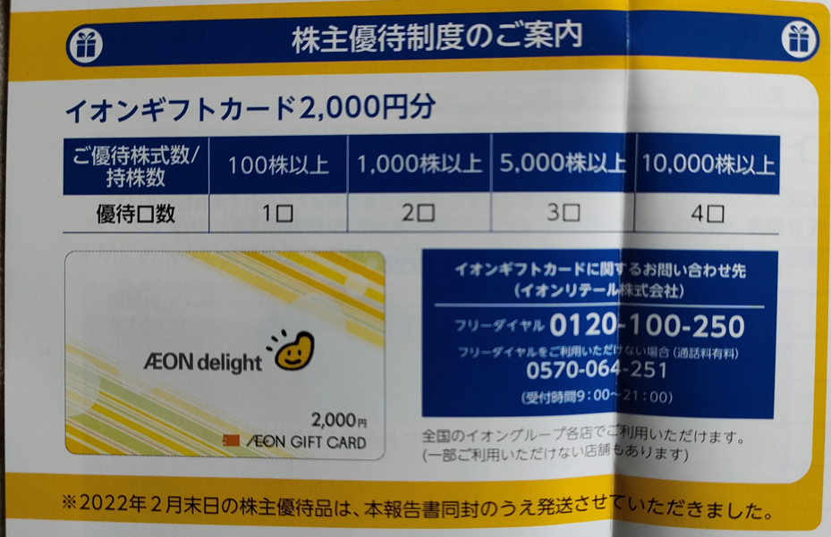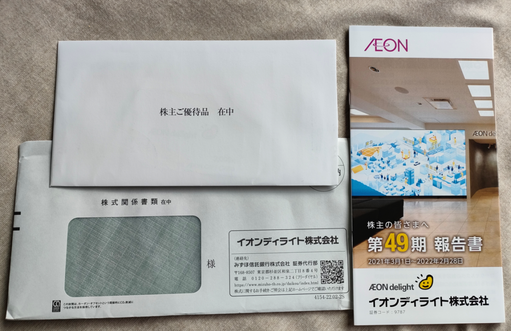 2022年5月某日、『イオンディライト(証券コード:9787)』 から株主優待が届きました。