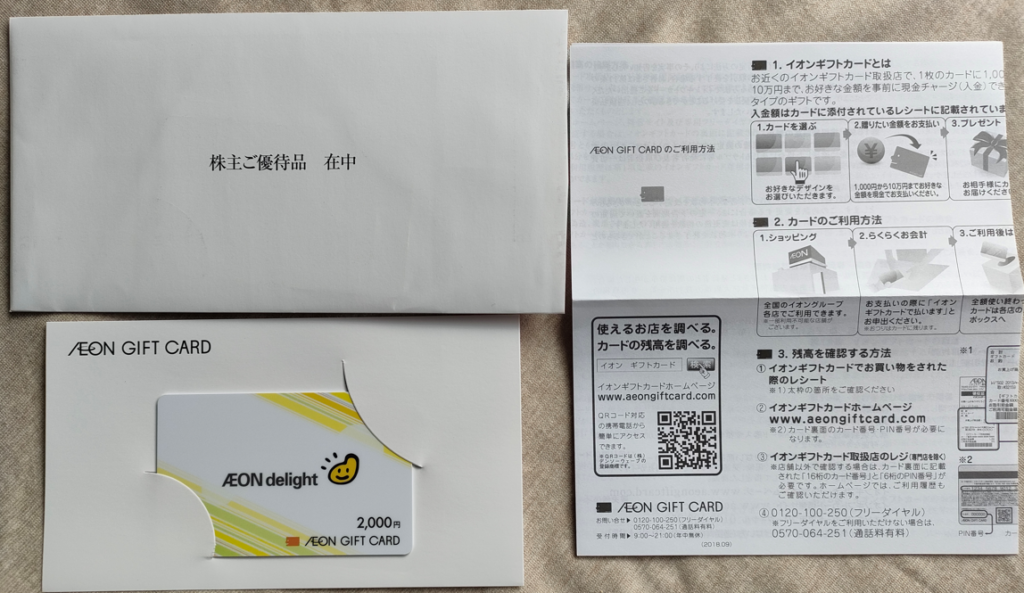 株主優待で年間数十万円も得している私が、『イオンディライト』の株主優待、『2000円分イオンギフトカード』を実物の写真を交えてご紹介します。