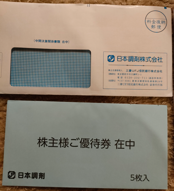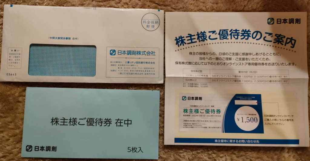 2022年12月某日、『日本調剤(証券コード:3341)』 から株主優待が届きました。