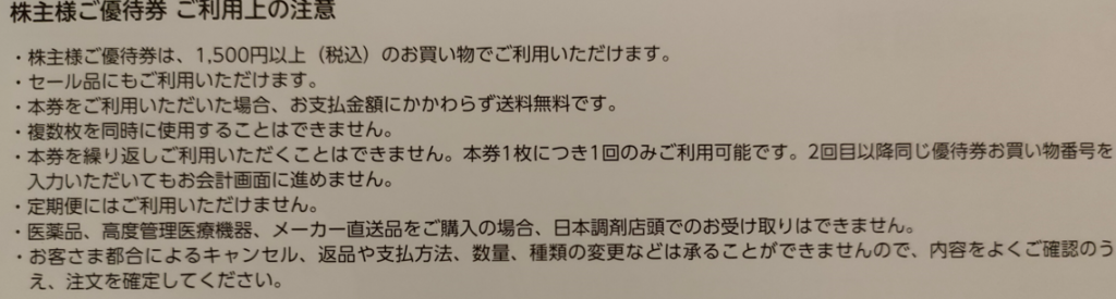 今回は『日本調剤』の『7500円お食事券と頼んだ商品』についてお伝えしました。