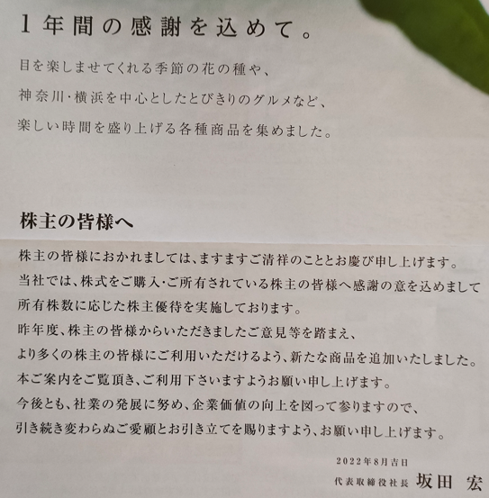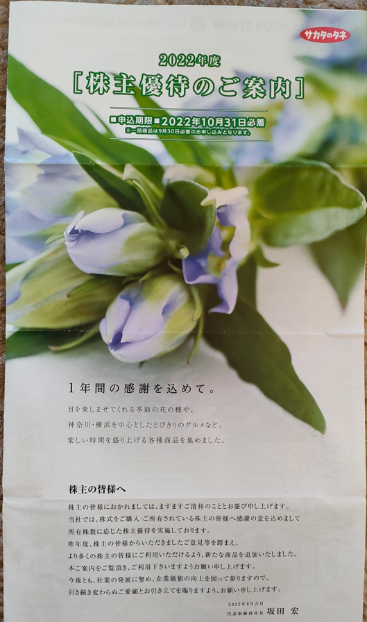 2022年11月某日、『サカタのタネ(証券コード:1377)』 から株主優待が届きました。