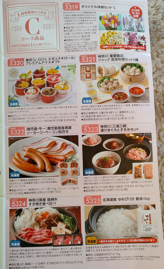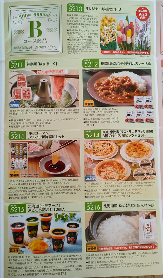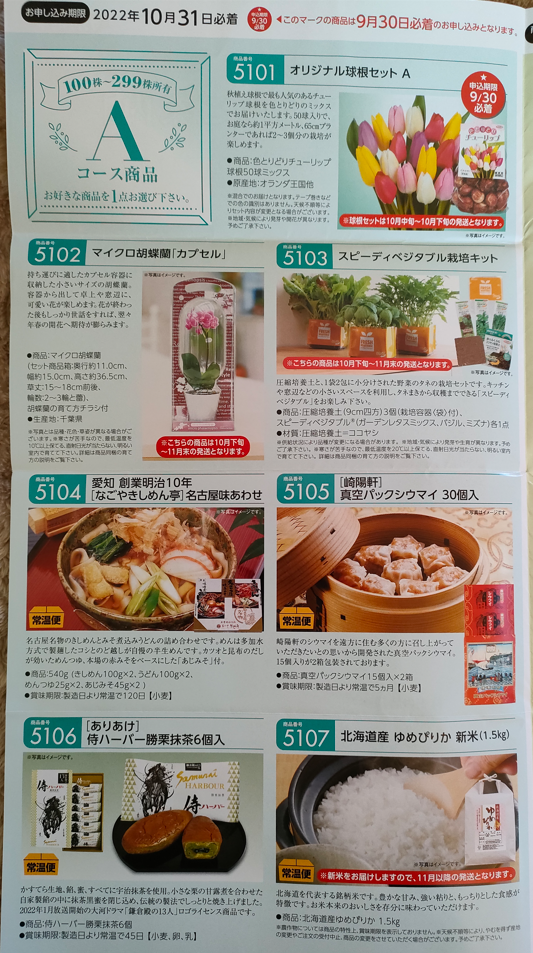 まずは、優待カタログのご紹介。毎年6月頃、このカタログが届きます。早速、チューリップ球根50個を選択しました。
