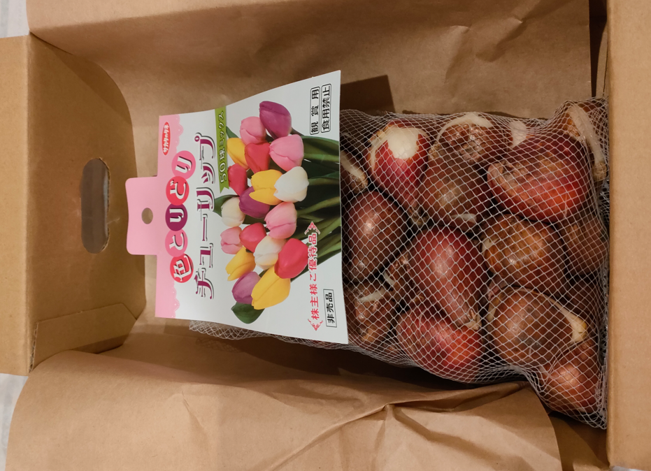 なんと、優待カタログで選択した『チューリップ球根50個』。