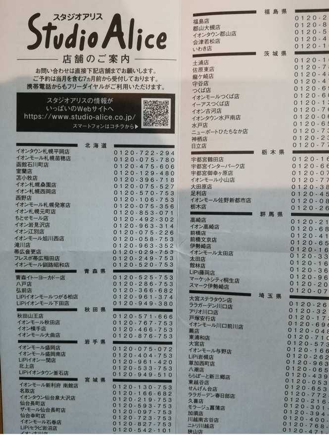 それでは、数千円相当の株主写真撮影券のご紹介です。スタジオアリスから封筒が届いたので開封してみると、株主優撮影券が入っていました。