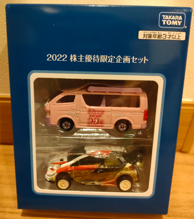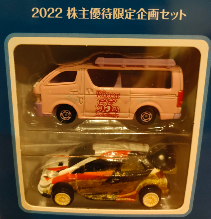 『タカラトミー』の株主優待は、3月に100株保有していれば、『トミカ2台セット』が貰えます。