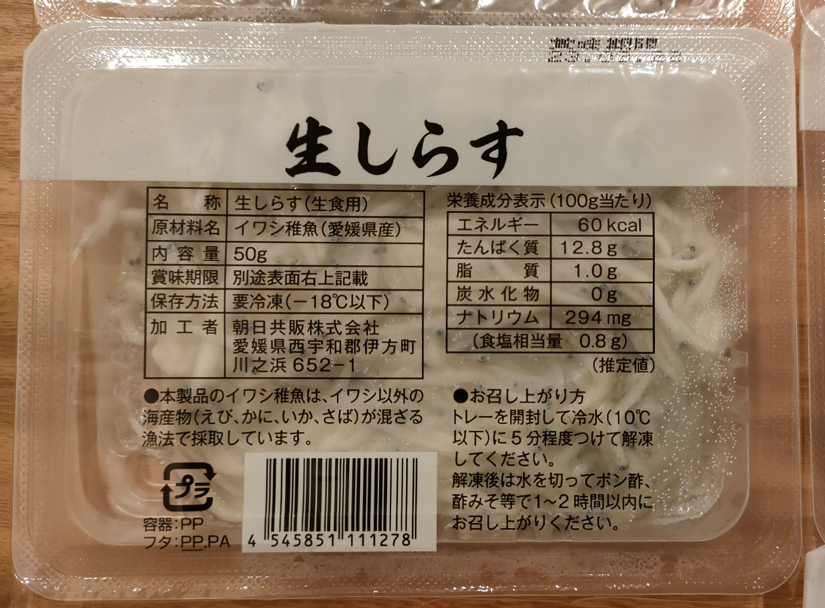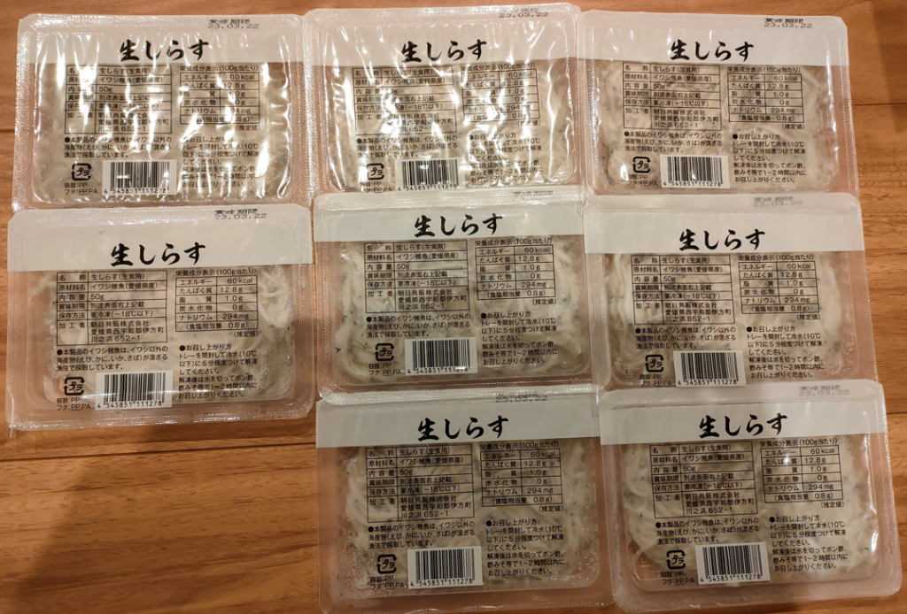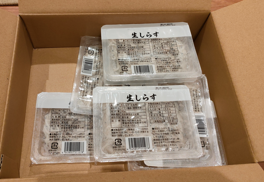 ウェブカタログで選択した『生しらす8パック』が到着