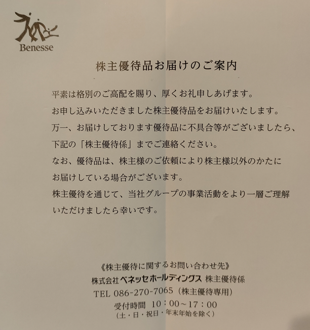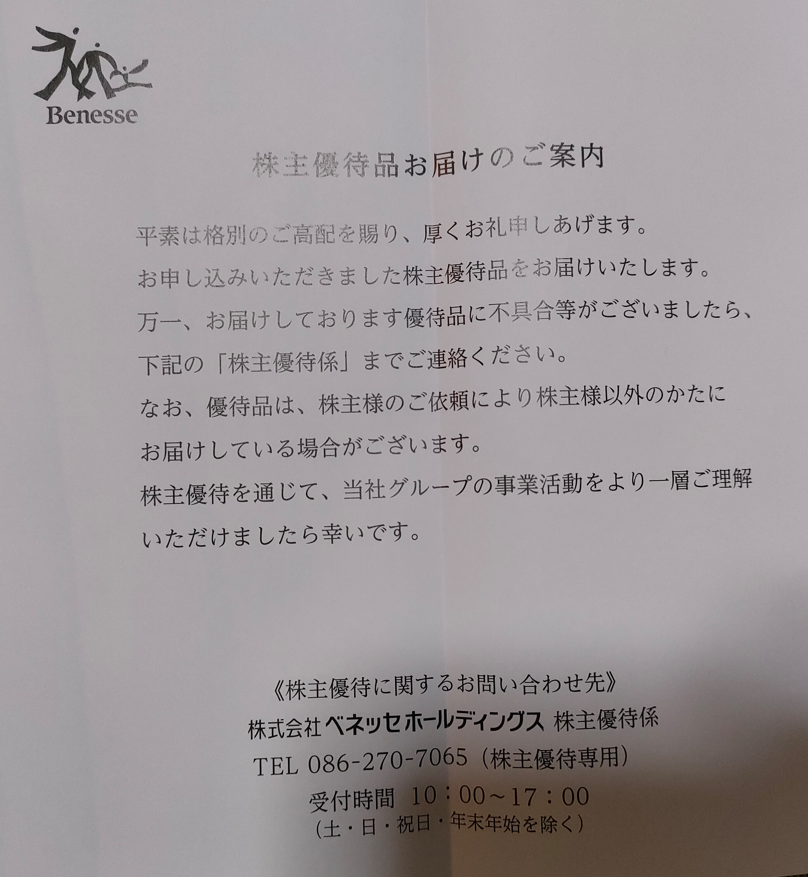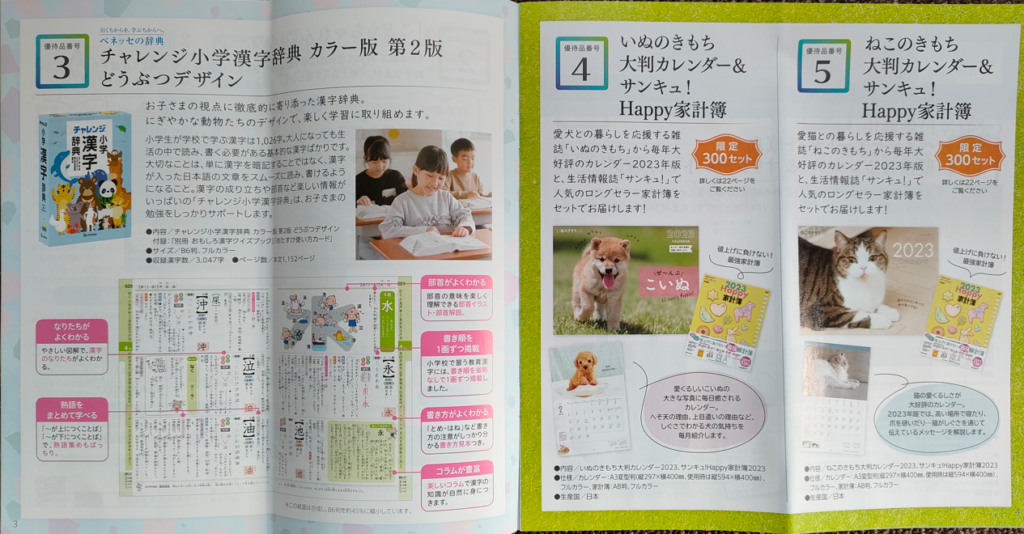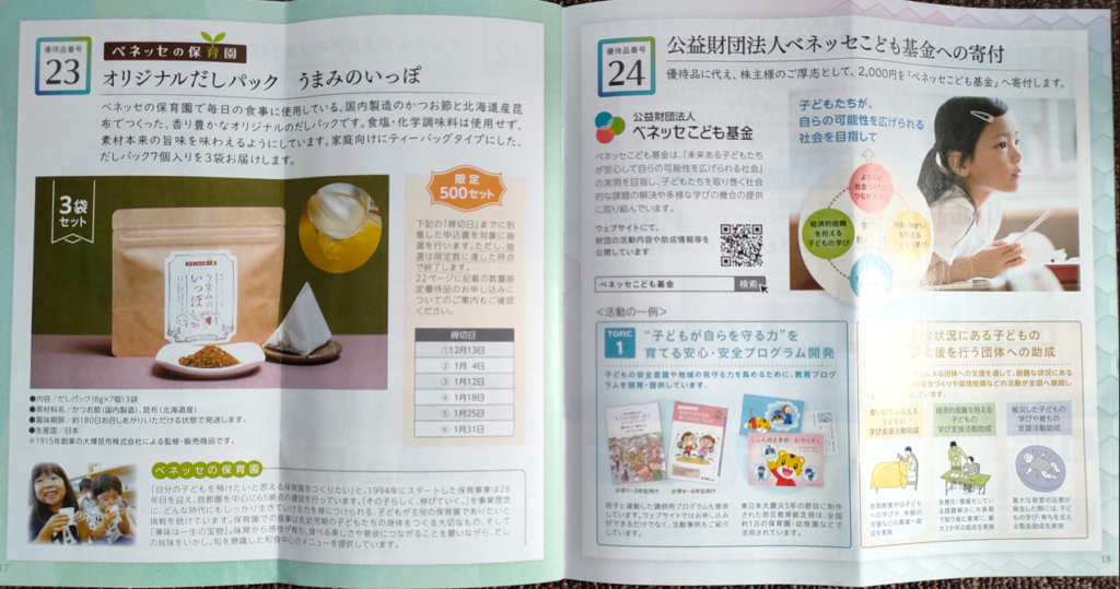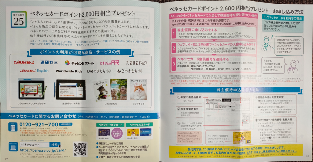 ベネッセ/株主優待紹介/2022年冬季 優待カタログ全ページ紹介。優待品も到着