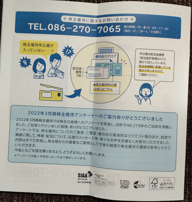 まずは、優待封筒が来た時の開封写真です。ドキドキです。