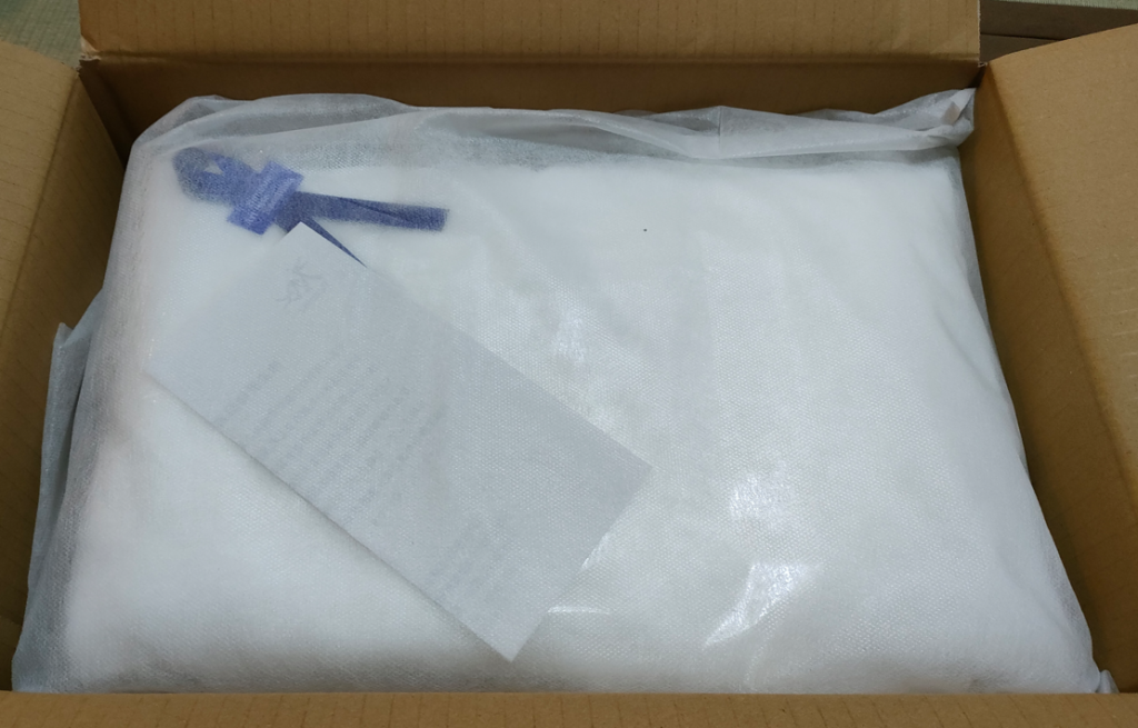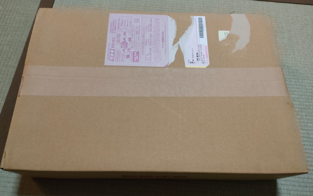 それでは、ベネッセハウスバスタオルのご紹介です。『↓』は宅急便から荷物が届いた様子です。外装の箱で中の商品がしっかりと守られていました