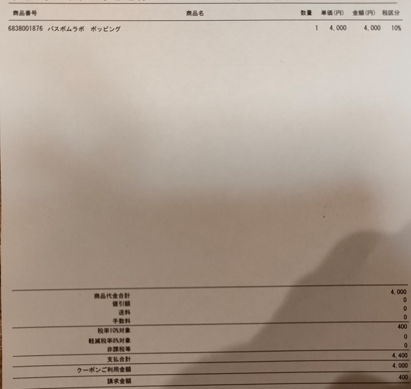 4000ポイントを使って交換しましたが、ちゃっかり消費税400円は自腹となりました。