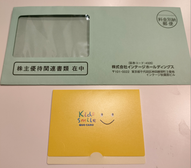 株主優待『1000円クオカード』到着!!