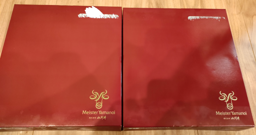 『↓』は宅急便から荷物が届いた様子です。外装の箱で中の商品がしっかりと守られていました。