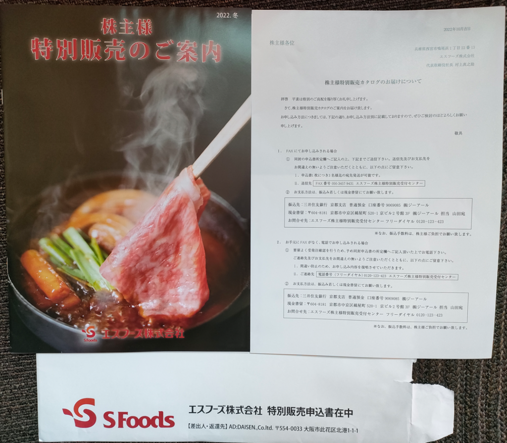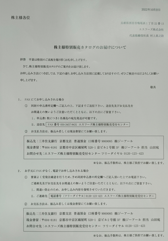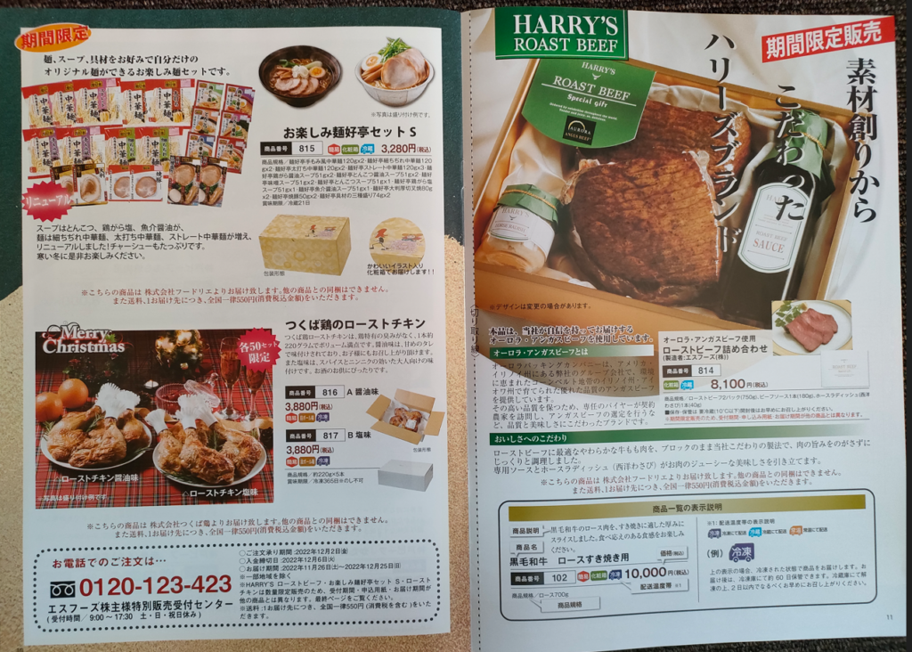 それでは、エスフーズの株主専用特別販売カタログのご紹介です。