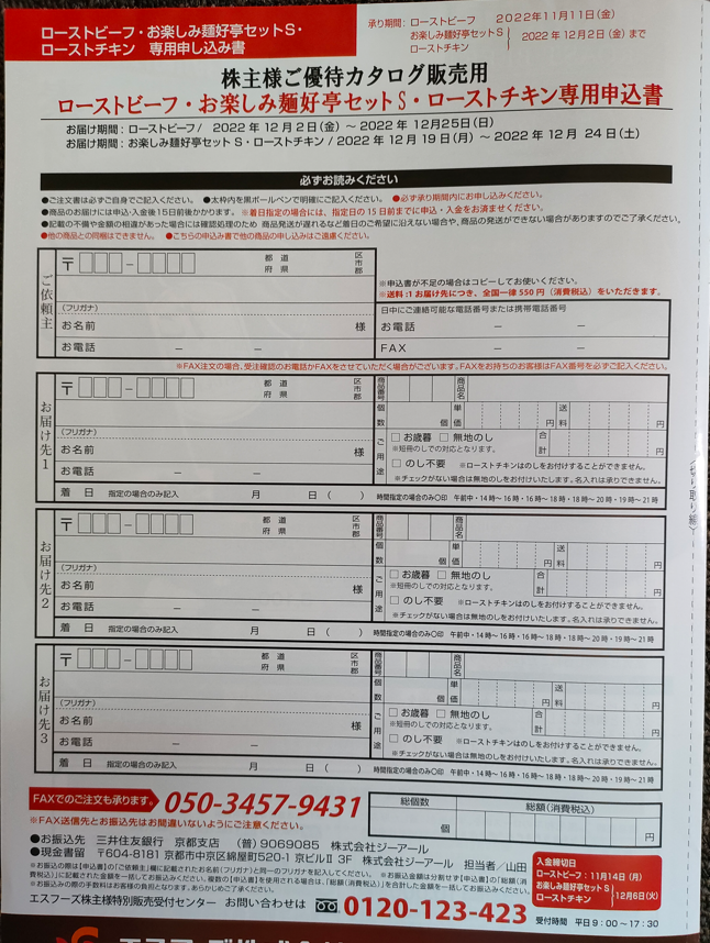今回は『エスフーズ』の『株主専用特別販売カタログ』についてお伝えしました。