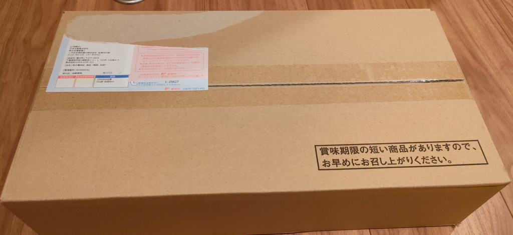 『↓』は宅急便から荷物が届いた様子です。外装の箱で中の商品がしっかりと守られていました。