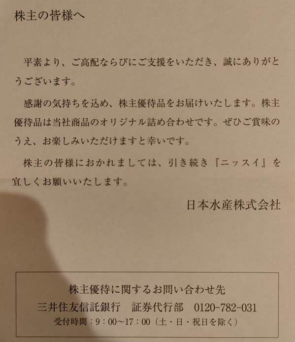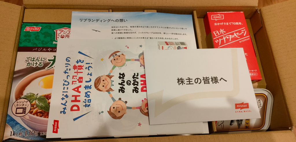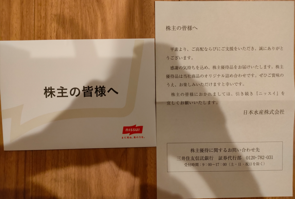 2022年8月某日、『日本水産(証券コード:1332)』 から株主優待が届きました。