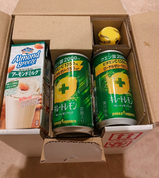 『↓』は宅急便から荷物が届いた様子です。外装の箱で中の商品がしっかりと守られていました。