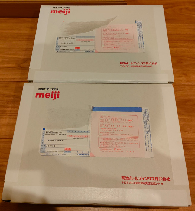 『明治HD』の株主優待は、3月に100株保有していれば『自社製品お菓子詰め合わせ』が貰えます。今回紹介したのは200株保有したときの優待品です。