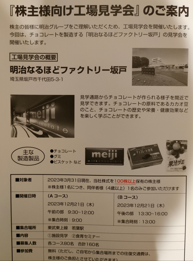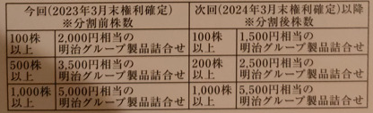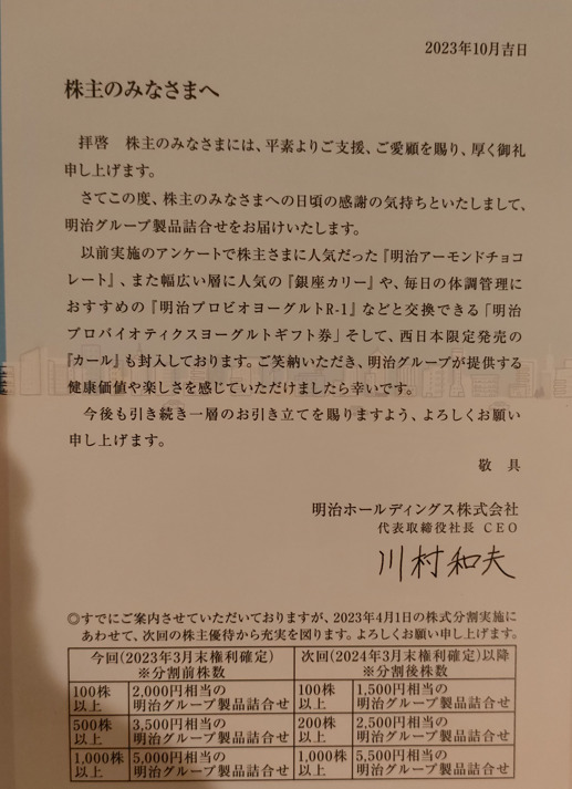 2023年10月某日、『明治HD』 から株主優待が届きました。