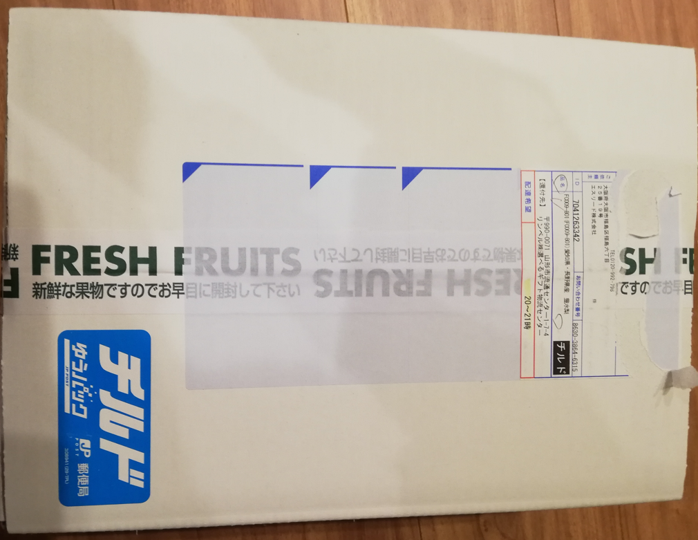 それでは、『豊水梨』のご紹介です。『↓』は宅急便から荷物が届いた様子です。外装の段ボールで梨がしっかりと守られています☆彡しかも、チルドで配送!!品質管理が徹底されています^^