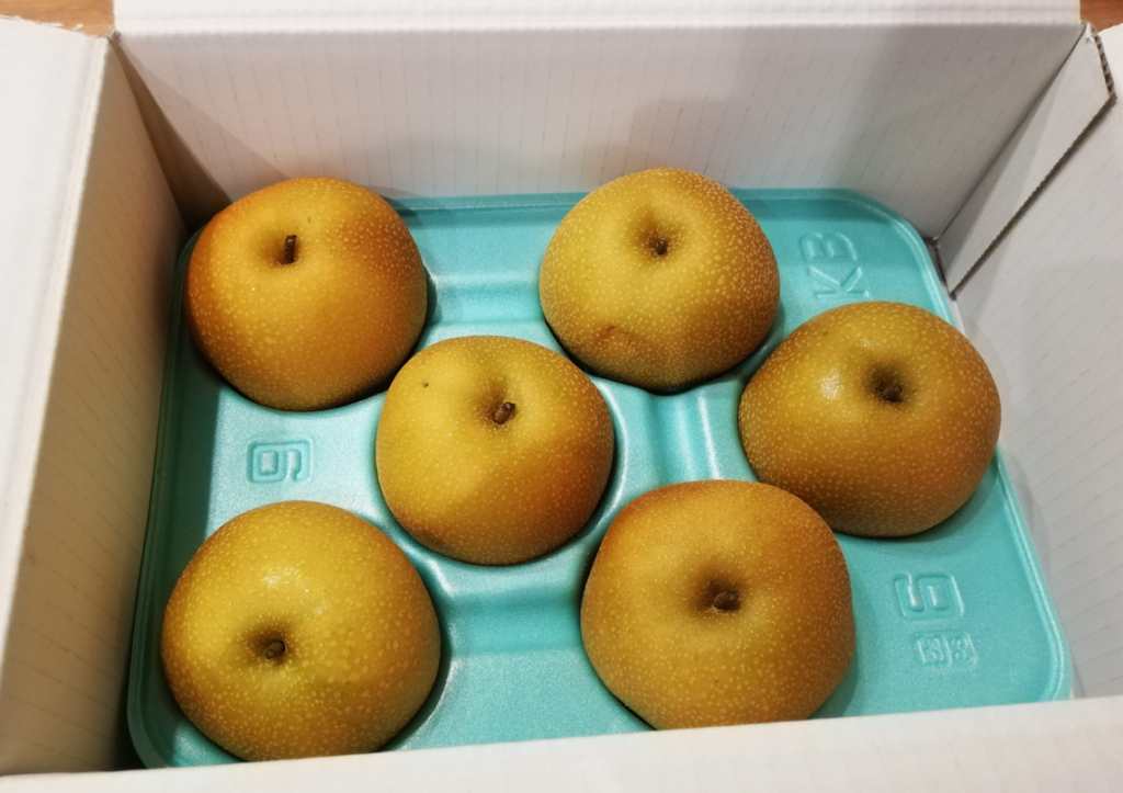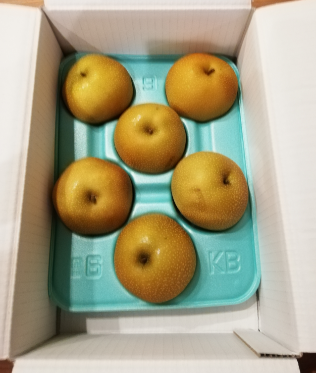 緩衝材を取り除くと『豊水梨』がお目見え!!1個500円の梨が6個入っています^^