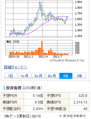 上記は、SBI証券HP 証券コード8877で検索 2021年9月時点の情報です。