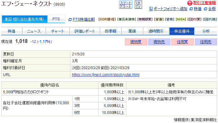 FJネクストの株主優待権利がもらえるのは毎年3月🤩