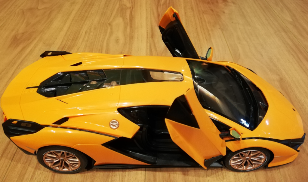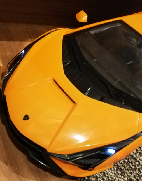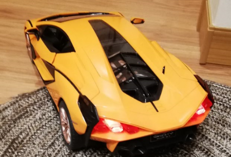 段ボールを開封すると、オレンジのランボルギーニが入っていました。