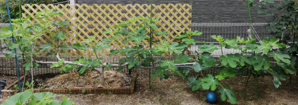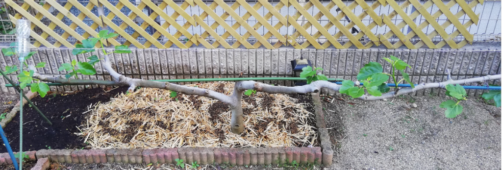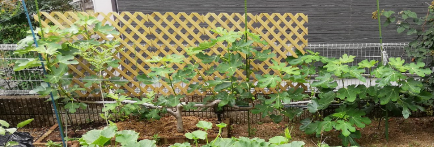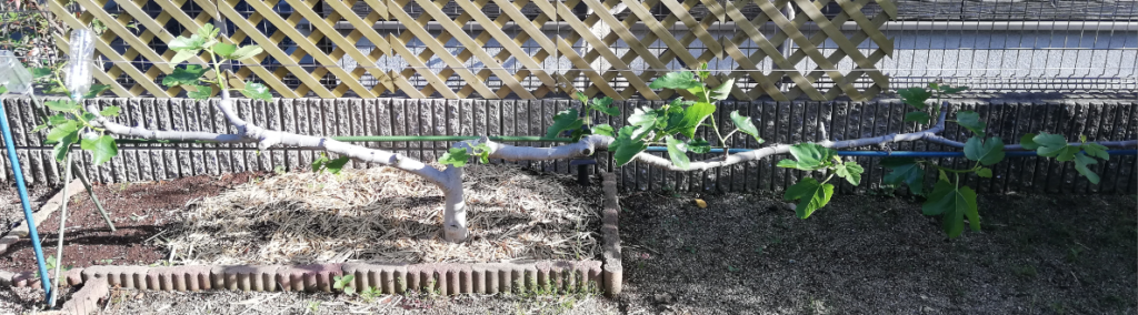 3年かけてイチジクの枝を支柱に沿わせて伸ばしていきました。