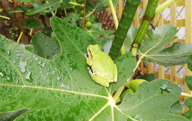 毎年、梅雨の時期、何故かイチジクの葉っぱにアマガエルが来ます(^^♪ただ、我が家ではメダカも飼ってるので食べられないか心配です((+_+))アマガエルが好きな方は、イチジクを植えるとカエルが来るかもしれません。我が家では多くの植物を育てていますが、ほぼすべてのカエルがイチジクの葉にとまっています。なぜ・・・??葉が大きいから??不思議・・・。