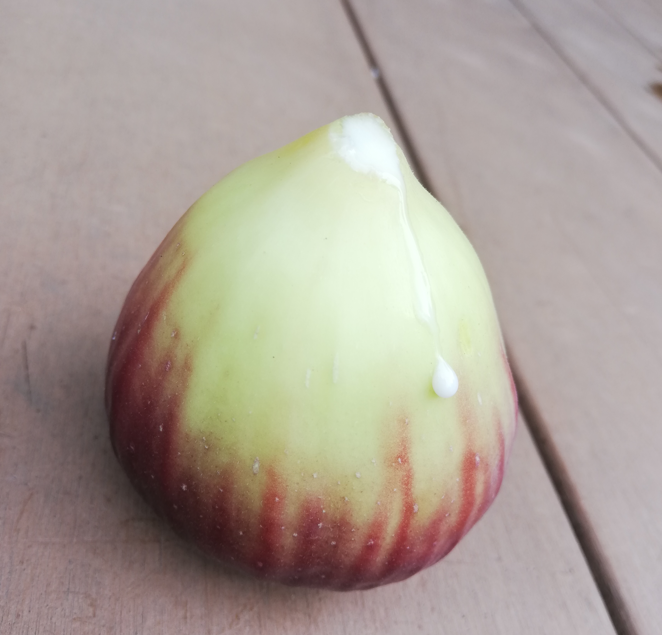 イチジクの実が大きくなってきました(^^♪イチジクは夏果と秋果があり、果実が冬を越して6月に収穫できる物を夏果、春から実をつけ8月以降に収穫出来るのを秋果といいます。桝井ドーフィンという品種は、夏果と秋果、両方収穫出来るので、初心者にオススメのイチジクです。↓は桝井ドーフィンの夏果の写真です☆彡