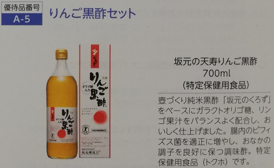 5つ目は、『坂元の天寿りんご黒酢700mL』です。壺づくり純米黒酢「坂元の黒酢」をベースにガラクトオリゴ糖、リンゴ果汁がバランスよく配合されています^^腸内のビフィズス菌を適正に保ち、おなかの調子を整えます。