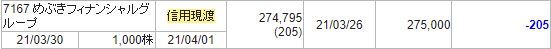 ㈱めぶきファイナンシャルは、常陽銀と足利銀等をグループとした会社で、茨城や栃木でシェア首位の企業です。めぶきファイナンシャルの通常の配当金は現在4.7%(1株11円)、PBRは0.3倍、PERは7倍、ROEは4%です。なんといってもPBRが0.3%という高い数字で、企業の価値に対して株価は割安感のある企業であることがわかります。この数字からもクロス取引ではなく、現物で保有しておいてもいい企業ですね^^