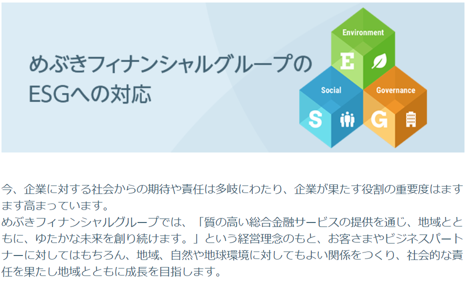 ㈱めぶきファイナンシャルESG活動をご紹介します。様々な環境要件がめまぐるしく変化する昨今、環境に配慮した企業の持続可能性を常に意識して、企業活動を行うようで、素晴らしい限りです^^