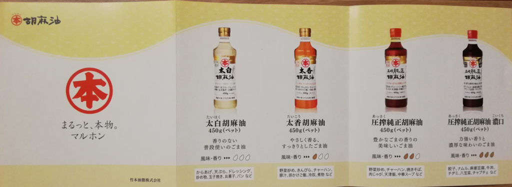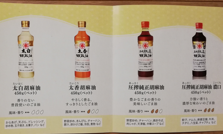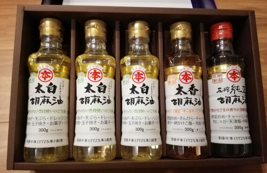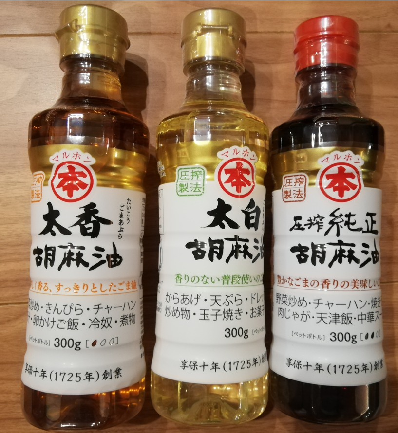 『太白胡麻油』以外にも、『太香胡麻油』と『圧搾純正胡麻油』もそれぞれ1本入っていました^^