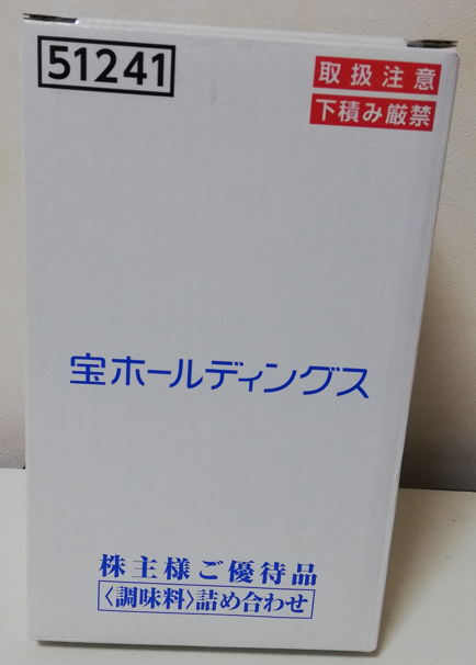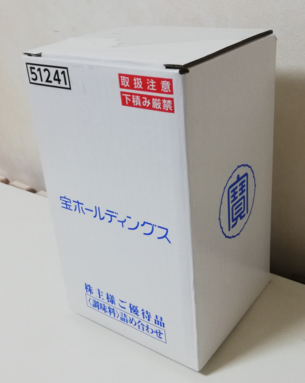 株主優待で年間数万円も得している私が ㈱宝ホールディングス の株主優待『 調味料詰合わせ(本みりん等) 』を実物の写真を交えてご紹介します。 よくHPに株主優待品が紹介されていますが、実物の写真を掲載するHPはあまり多くありません。当サイトでは、優待品の実物写真を多く掲載しておりますので、みなさんの株主優待の銘柄選定にご活用いただけると幸いです。