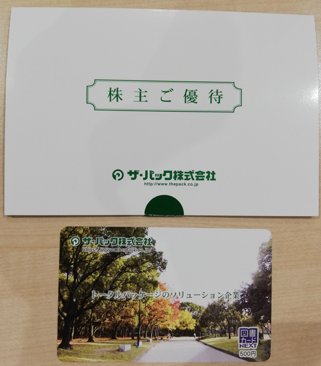 株主優待で年間数万円も得している私が、『㈱ザ・パック』の株主優待、500円分の図書カードを実物の写真を交えてご紹介します。