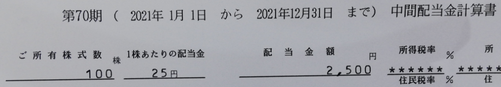 『↓』は実際の中間配当金の連絡です。1株当たり25円でした☆彡