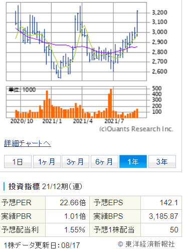 上記は、SBI証券HP 証券コード3950で検索 2021年9月時点の情報です。